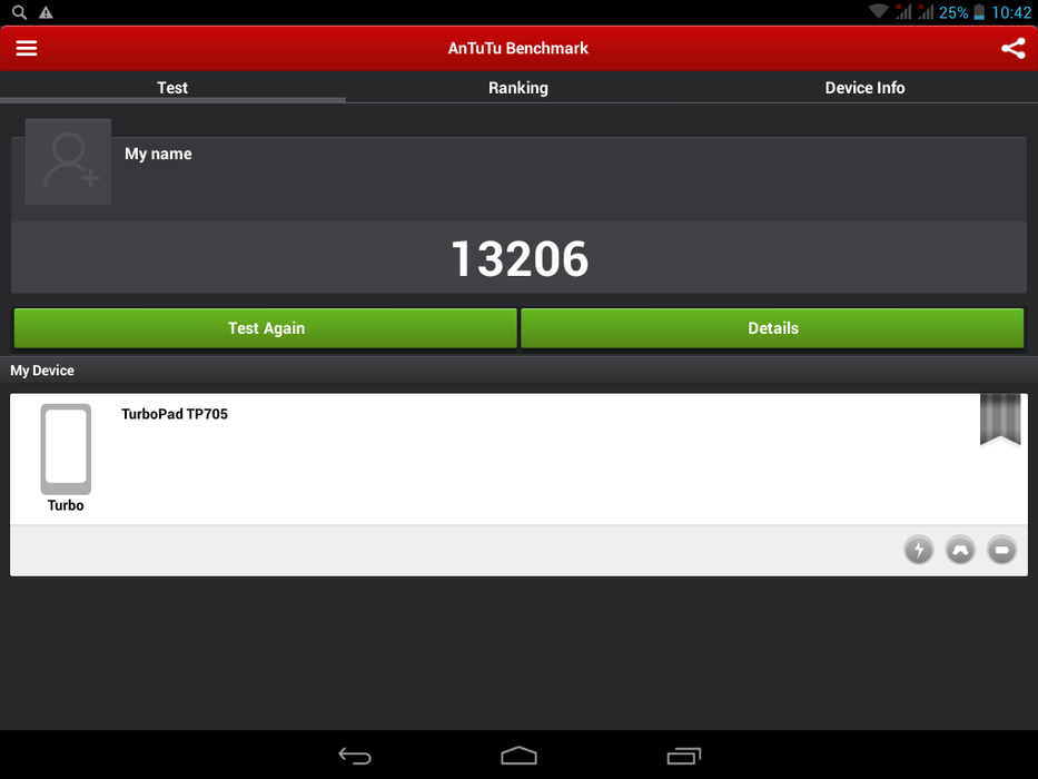 На корме аппарата живет зеленый андроид 4.2.2. Сама прошивка является по всем параметрам стоковой, и комплектуется лишь небольшим количеством симпатичных обоев. TurboPad 705 поддерживает беспроводной проектор (необходим Wi-Fi), две удобные выпадающие сверху менюшки и компоновку стандартных ярлыков с кнопкой списка приложений внизу по центру. Это микроменю стоит «над» рабочим столом и не прокручивается, а значит доступ к жизненноважным функциям будет открыт с любого экрана.