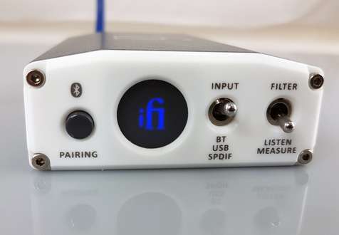 Есть тут еще два тумблера: для переключения между цифровыми входами (BT, USB, SPDIF) и переключения между двумя цифровыми фильтрами (Listen, Measure), которые меняют характер звучания, но не глобально: Listen звучит более плотно и капельку шире, а Measure - более линейно и утонченно. В общем, разница едва уловима и различима в мелких нюансах.