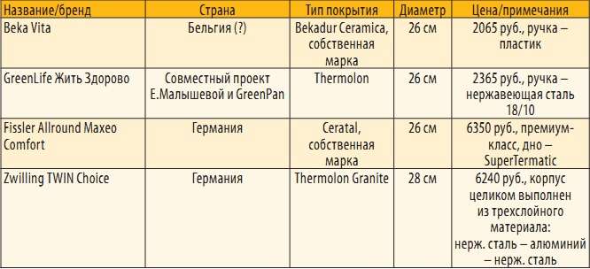 Существует четыре марки керамических покрытий. Это Ceralon, Thermolon, Whitford Fusion, Greblon Ceram. Помимо перечисленных, на рынке можно встретить множество наименований керамических покрытий, но на самом деле это всего лишь посудные бренды, которые используют те покрытия, о которых мы говорим. В любом случае лучше выбрать сковороду с покрытием одной из упомянутых марок — это дополнительная гарантия качества. Не стоит бояться собственных марок лишь у известных брендов — Fissler, Moneta, Lacor или Henkels.