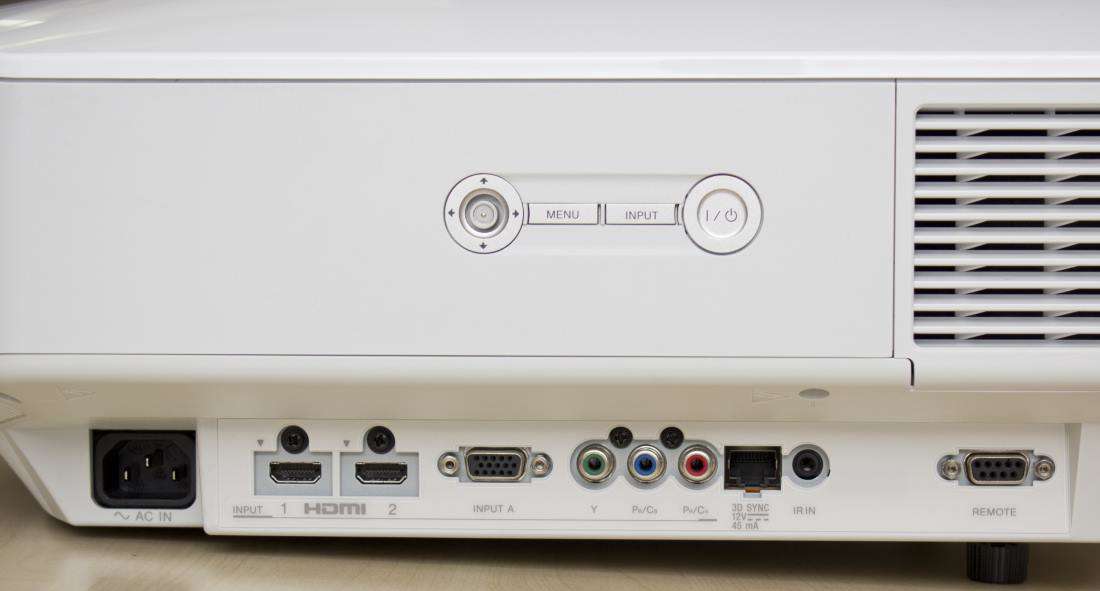 Вышло очень удобно: там, где проектор выдыхает, всегда будет свободное пространство для горячего потока, потому что именно рядом с левой решеткой расположен интерфейс с разъемами и кнопки ручного управления. Да, чуть не забыл: шум вентилятора на 21 дБ в любом режиме практически не слышно. Его просто нет - потому чуть и не забыл...