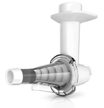 К мясорубкам Kenwood 4 и 5 серий подходят все насадки для низкоскоростного гнезда кухонной машины Kenwood Chef. Наши консультанты в магазинах об этом хорошо знают и постоянно продают насадки к кухонной машине в качестве насадок для мясорубок, что значительно расширяет возможности прибора и позволяет удовлетворить личные потребности клиента. Среди таких насадок — пресс для ягод, терка-ломтерезка, насадка для приготовления фигурной и плоской пасты и даже мельничка для круп.