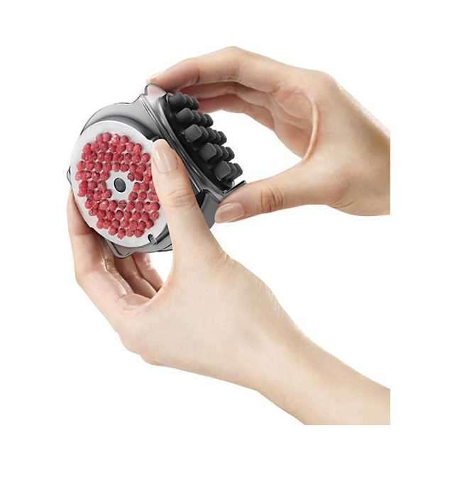 КОНСТРУКЦИЯ: DC-двигатель фирмы Mega Motor, корпус из пластика и нержавеющей стали, шнек мясорубки из прочного полимерного материала, шнек соковыжималки из керамики, серпообразный нож и решетка из закаленной нержавеющей стали, универсальный разъем для шнура, отсоединяющийся шнур,