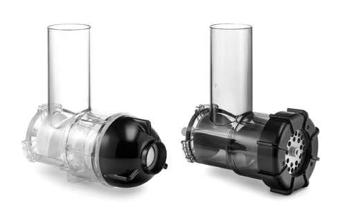 Современный очень тихий прибор, совмещающий в себе мясорубку и шнековую соковыжималку. Опционально в комплектации могут быть насадки для приготовления колбасок и сосисок. Основа конструкции — надежный низкооборотный двигатель с плавным пуском, скоростью вращения всего 75 об/мин и мощностью лишь 170 Вт, изготовленный специально для этого прибора и отвечающий за производительность, длительную (20 минут) непрерывную работу и действительно очень низкий уровень шума. Качество и высокие технологии присутствуют здесь в каждой мелочи, будь то материалы, из которых выполнены оба шнека, особое расположение отверстий решеток, которые подогнаны точно под размеры ножа, сам нож серпообразной формы с увеличенной режущей поверхностью для того, чтобы действительно разрезать, а не мять продукты. Шнек мясорубки выполнен из особо прочного полимерного материала, который имеет ряд преимуществ перед металлическим: не окисляется, не впитывает запахи, ударопрочен, не деформируется при высоких нагрузках и устойчив к воздействию моющих средств. Материал шнека соковыжималки (особо прочная керамика Ceramic Pro+) гигиеничен, легко моется и не окрашивается. Отдельных слов достоин дизайн новинки: камеры с режущими блоками прозрачны (но при этом невероятно прочны, так как изготовлены из инновационного пластика), и можно видеть весь процесс, а черный со стальной вставкой корпус так элегантен, что прибор не захочется убирать в шкафчик. А если и придется это сделать, то удастся без особых усилий поставить прибор и на самую верхнюю полку — el’master очень легок.