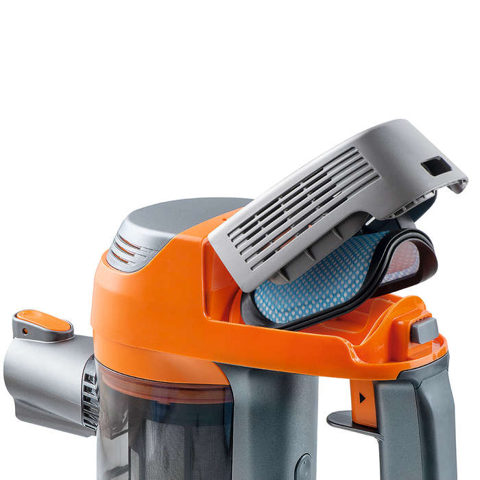 На выходе установлен фильтр тонкой очистки, который иногда нужно вынимать и промывать проточной водой. После высыхания он снова готов к работе.В комплекте есть специальный кронштейн, с помощью которого пылесос можно закрепить на стене, например, в прихожей. Благодаря своему современному дизайну и яркому цвету аппарат смотрится органично и стильно. И он всегда на страже чистоты.
