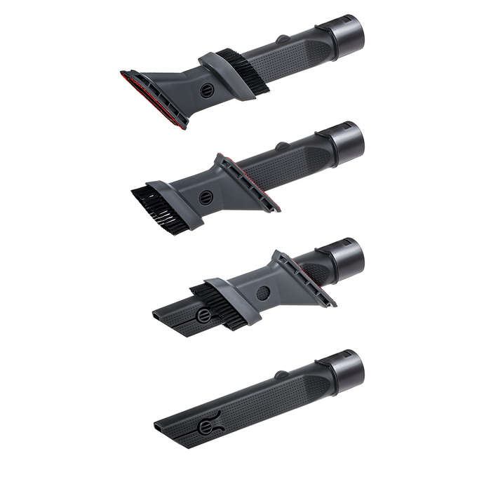 В комплект входят две насадки, но на самом деле их пять! Комбинированная заменяет сразу три: щелевую, «с кисточкой», мебельную. Это замечательное содружество щеток наведет чистоту на любых поверхностях, при этом они всегда под рукой.