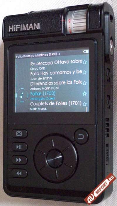 Уровень громкости меняется круглой ручкой, утопленный в верхнюю часть корпуса, причем используется не плавная, а пошаговая регулировка, реализованная на резисторной сборке. Еще ряд переключателей можно найти на боках плеера: выбор типа выхода наушников нормальный/балансный (с раздельной землей), низкий/высокий коэффициент усиления, переключателем HD/Vintage меломан может включать НЧ-фильтр (спад 3 дБ/октава после 20 кГц) или оставить верхний диапазон как есть. Очередной переключатель на правом торце корпуса задействует блокировку всех кнопок и выключает экран плеера. Разъемов HM-901 предлагает не много, всего 3 штуки: верхний мини-джек служит для подключения наушников, слот слева предназначен для SDXC-карты емкостью до 128 ГБ (встроенной памяти плеер не имеет), нижний порт — многофункциональный. С помощью нескольких кабелей, идущих в комплекте, его можно приспособить для подключения плеера к компьютеру по USB, для вывода аналогового сигнала (HM-901 работает как ЦАП), для приема цифрового сигнала SPDIF по «коаксиалу». К этому же порту подключается адаптер для зарядки встроенного аккумулятора. Среди аксессуаров на сайте компании есть дополнительный кабель для цифрового SPDIF-выхода с коаксиальным разъемом, с ним HM-901 можно будет использовать в качестве цифрового проигрывателя, считывающего музыку с SD-карты. Минус конструкции с единственным портом для всех соединений — невозможность одновременно заряжать устройство, заливая на него новые музыкальные альбомы или используя как ЦАП/усилитель наушников.