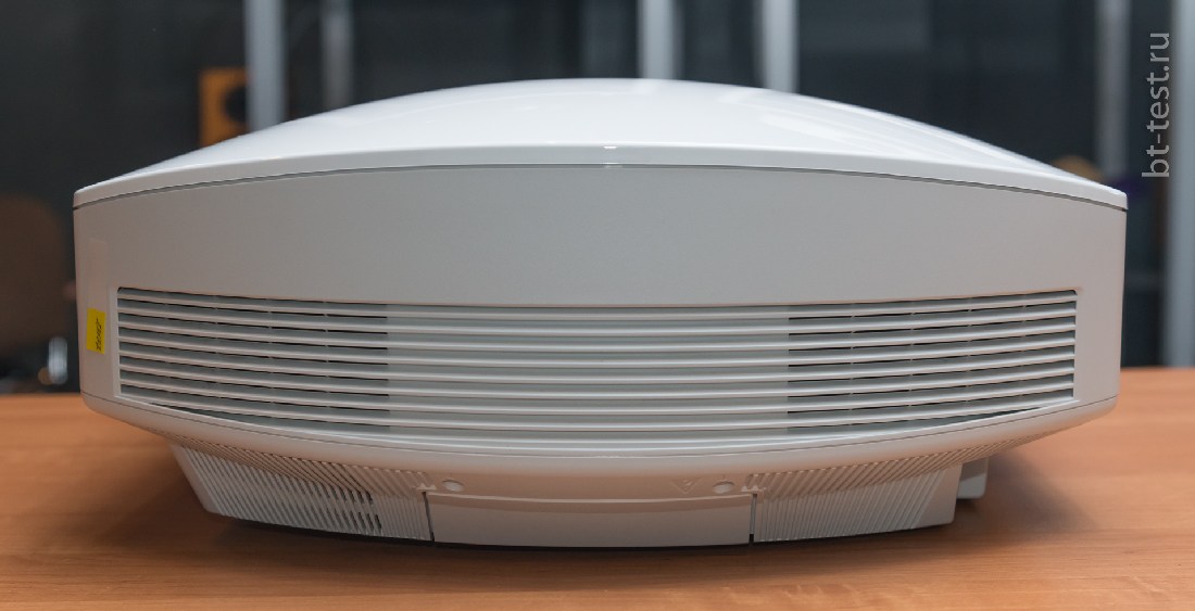 Интересна нижняя часть корпуса. Здесь расположены две резьбовые ножки для выравнивания уровнять проектора и задняя мононожка, представляющая собой изогнутое и фиксированное по высоте и по уклону коромысло. Регулирование по «третьей» точке происходит автоматически, что значительно ускоряет процесс подстройки проектора под место инсталляции.