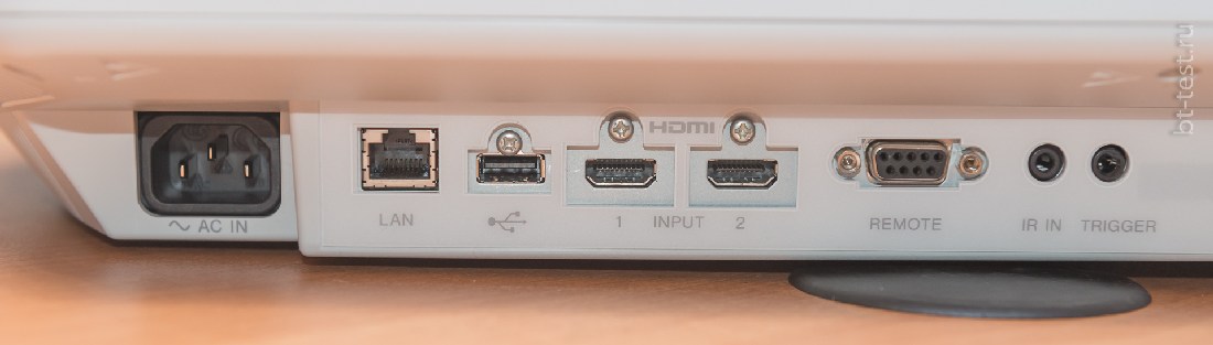Все разъемы сосредоточены в нижней части сбоку. Есть мнение, что такое размещение удобнее, чем заднее. В отличии от своего предшественника проектор VPL-HW65 потерял аналоговые интерфейсы.