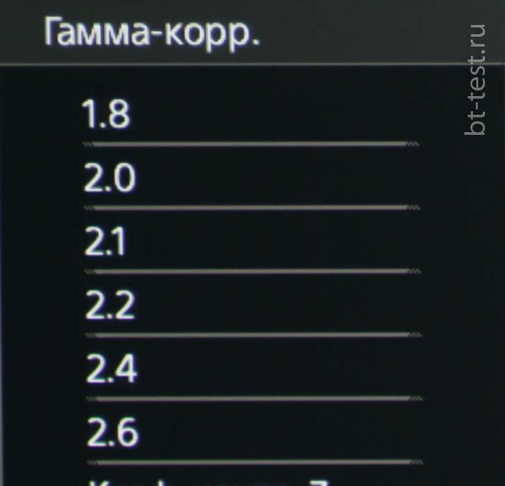 Можно выбрать значение от 1,8 до 2,6 с шагом 0,2, либо поколдовать над четырьмя пользовательскими ячейками. Столь небольшой шаг между настройками позволяет подобрать точное значение. Особенно, когда речь идет о неидеальных условиях, например, в освещенной гостиной.