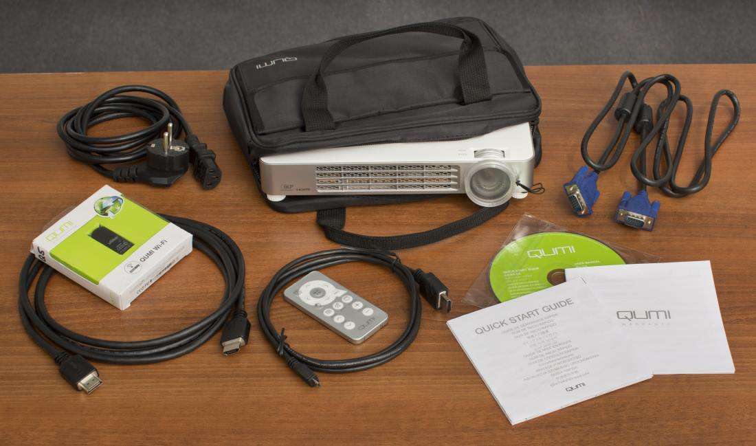 Кстати. я изрядно удивился, обнаружив новинку в разделе «Проекторы для образования». Но изучив повнимательнее функции, понял в чем тут дело: Qumi Q7 умеет еще показывать презентации и аккуратно работать с документами Microsoft Office (Word, Excel, PowerPoint), в формате «блокнот» и Adobe PDF. А если к нему приделать мышку и клавиатуру, то проектор может поработать и компьютером – в нем есть встроенный браузер и он в принципе умеет общаться с планшетами и смартфонами по Wi-Fi (правда, для этого надо докупить дополнительный модуль).