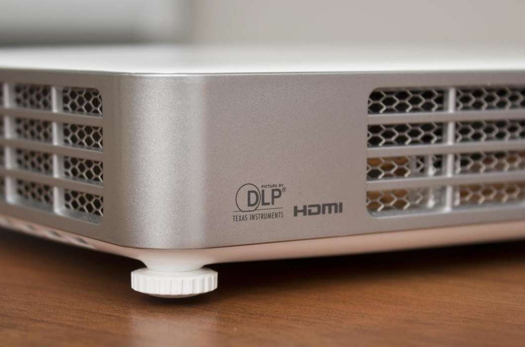 Я так и не определился, какой вариант мне больше пришелся по душе. Проектор выпускается в двух цветах: в черном и белом. Черной или белой может быть верхняя панель и весьма практичные ножки, которые выкручиваются по высоте и которые не скользят из-за резиновых «подушечек на лапках». Верхняя крышка - глянцевая, практически зеркальная.