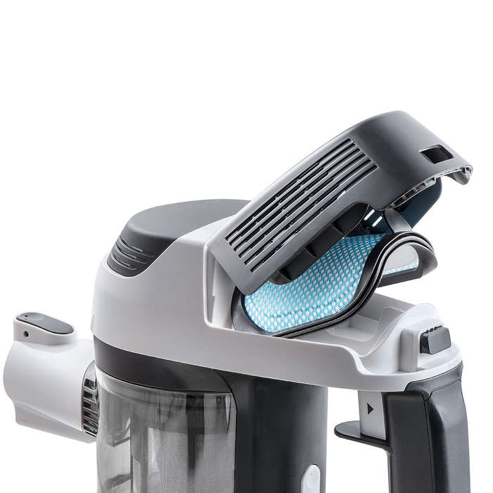 Благодаря прозрачности контейнера и его небольшому объему в пылесосе «не потеряются» нужные вещи, например, упавшая сережка или детская игрушка. На выходе установлен фильтр тонкой очистки, не позволяющий мельчайшим частичкам пыли проникнуть назад в воздух комнаты. Его иногда нужно вынимать и промывать проточной водой. После высыхания он снова готов к работе.