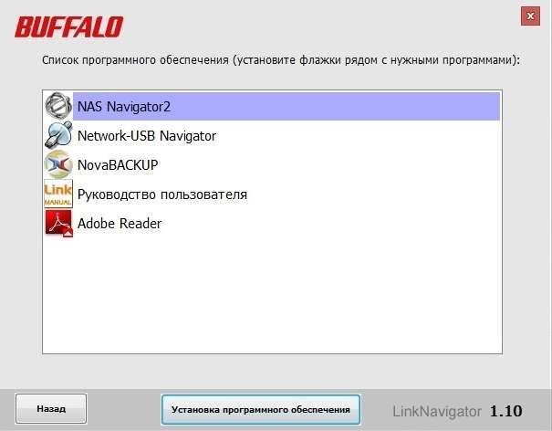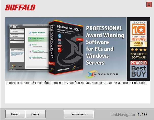 Рис.5. Две первые утилиты фактически стандартны для подобных устройств: NAS-навигатор – это основной интерфейс сетевого накопителя, NETWORK USB-навигатор отвечает за работу устройств, подключенных к LinkStation через USB-порт. А вот NOVA BUCKUP - утилита для резервного копирования, реализована следующим образом: