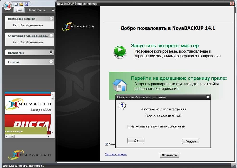 Конечно, для воспроизведения аудио-файлов качества SACD более подходят стерео-системы, но многие меломаны используют в своих аудио-комплексах медиаплееры, а уж эти девайсы имеют сетевую функцию в подавляющем большинстве. 4. Софт для резервного копирования NovaStor NovaBACKUP в комплекте. В 1997 году я «разорился» на внутренний жесткий диск емкостью 1Гб, - тогда это было немало. Сейчас, - «плюс-минус» 100 Гб решительного значения при покупке диска не играют.