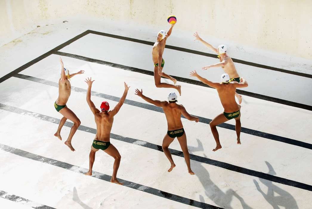 Австралийская олимпийская команда по водному поло фотографируются 31 мая 2012 года в пустом бассейне в Сиднее во время подготовки к Олимпиаде-2012 в Лондоне.