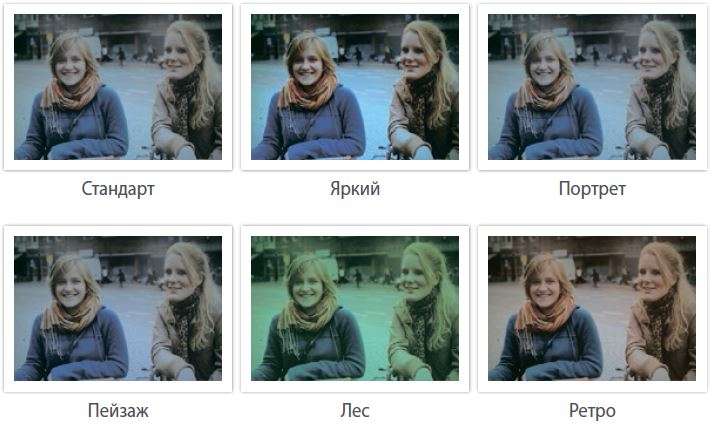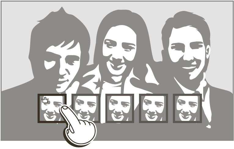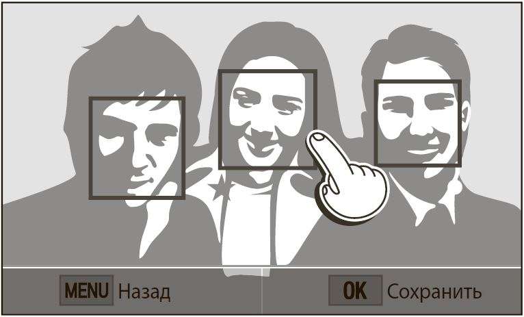 Каждое из распознанных автоматикой лиц можно по очереди выделить, после чего одним касанием выбрать для него наилучший вариант из пяти (они одновременно выводятся на экран в квадратных рамочках), и после коррекции каждого из портретов — подтвердить сохранение результирующего снимка.