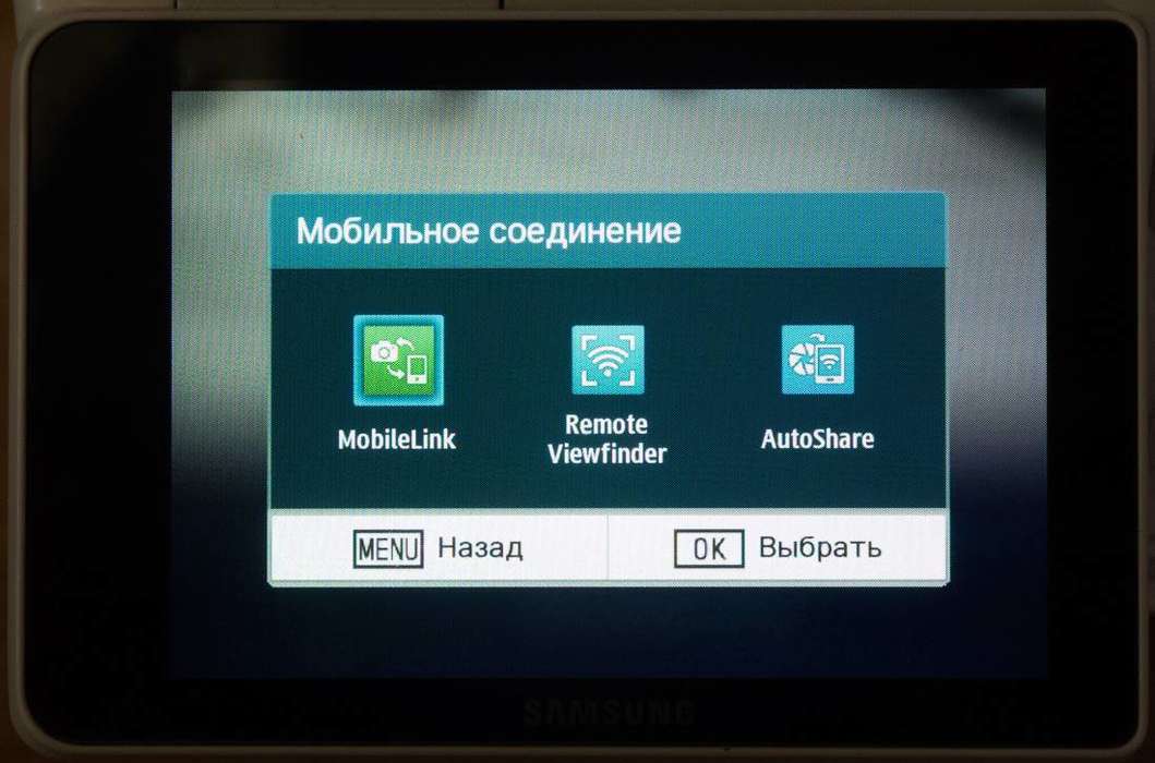 Если смартфон оснащен модулем NFC, то данное приложение запустится на нем автоматически, когда к датчику поднесут камеру NX mini. При помощи функцииMobileLinkчерез Wi-Fi-соединение можно обмениваться файлами между камерой и мобильным устройством, причем этот процесс двусторонний.