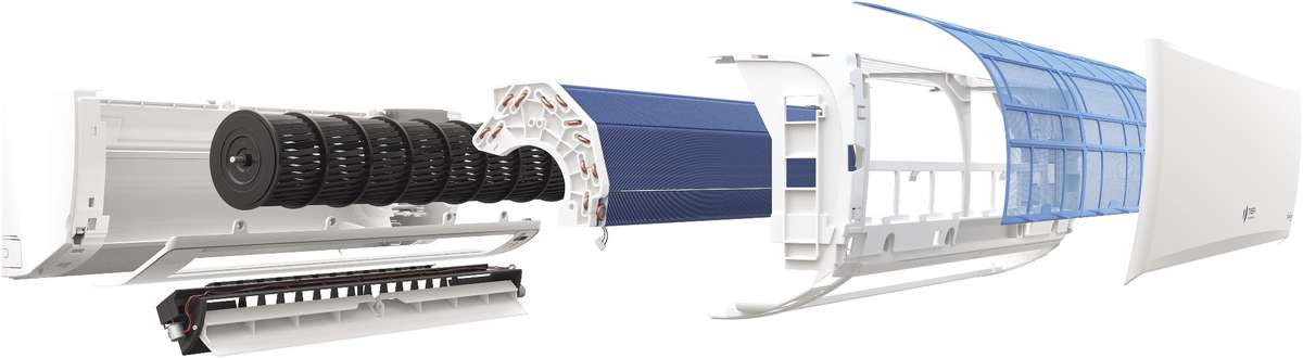 В противопылевой системе фильтрации кондиционера используется сетка с размером ячеек в 1,9 раза мельче, чем у остальных моделей, присутствующих на российском рынке. Это сделано для того, чтобы лучше очищать входящий воздух от мельчайших частиц пыли, что продлевает срок службы кондиционера. Правда, и очищать сетку от пыли придется чуть чаще, но это лучше, чем ремонтировать кондиционер.