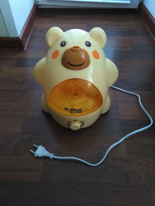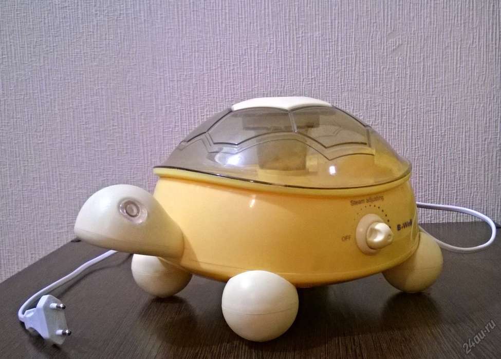 Компания B.WELL занимается производством медицинских приборов, и предлагает покупателям несколько моделей детских увлажнителей. Модель WN-100 выполнена в виде черепашки, панцирь которой используется для залива воды. Объем бака сложно назвать большим, поскольку он составляет всего 1,1 литра. Однако учитывая невысокую производительность устройства, его вполне хватает на 6–8 часов беспрерывной работы. Интересной особенностью этой модели являются встроенные в глаза черепахи светодиоды, которые загораются при включении. Специальный датчик следит за уровнем воды в устройстве. Как только она заканчивается, прибор автоматически отключается.