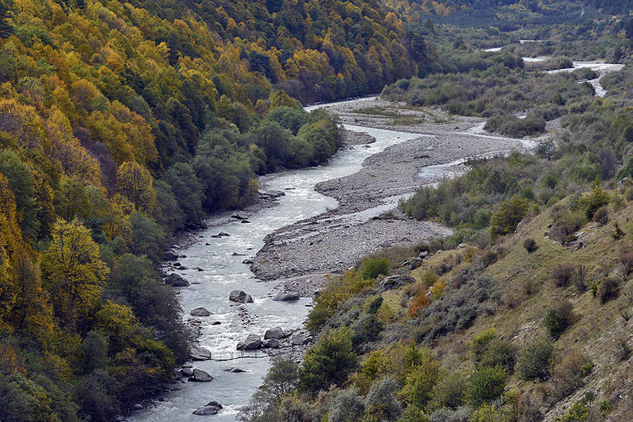 — В пейзажной фотографии очень важно, чтобы была многоплановость, чтобы картинка была не плоская, а глубокая. Многоплановость достигается в первую очередь цветом и светом. Даже если нет перепадов рельефа, цветовые и световые пятна сделают картинку глубокой. В этом смысле Осетия — просто подарок для пейзажного фотографа. Например, в Куртатинском ущелье, я помню, я сфотографировал образцовый многоплановый пейзаж: по первому плану у нас была река, на втором плане — хребет с башнями, дальше еще несколько хребтов: один, второй, третий, а на самом верху — это Большой Кавказский хребет. Такие картинки, конечно, можно снимать очень долго, потому что свет меняется, ветер, он гонит тучи, появляются лучи солнца. Вообще пейзажная фотография требует много времени. Иногда, чтобы получить хороший кадр, может быть, нужно поставить палатку, и ждать именно такой свет, который позволит сделать не просто кадр, а именно красивую картинку.