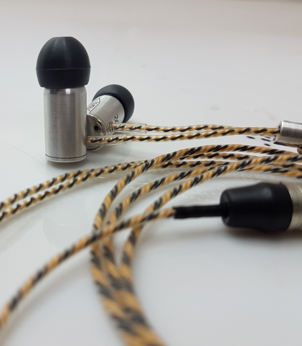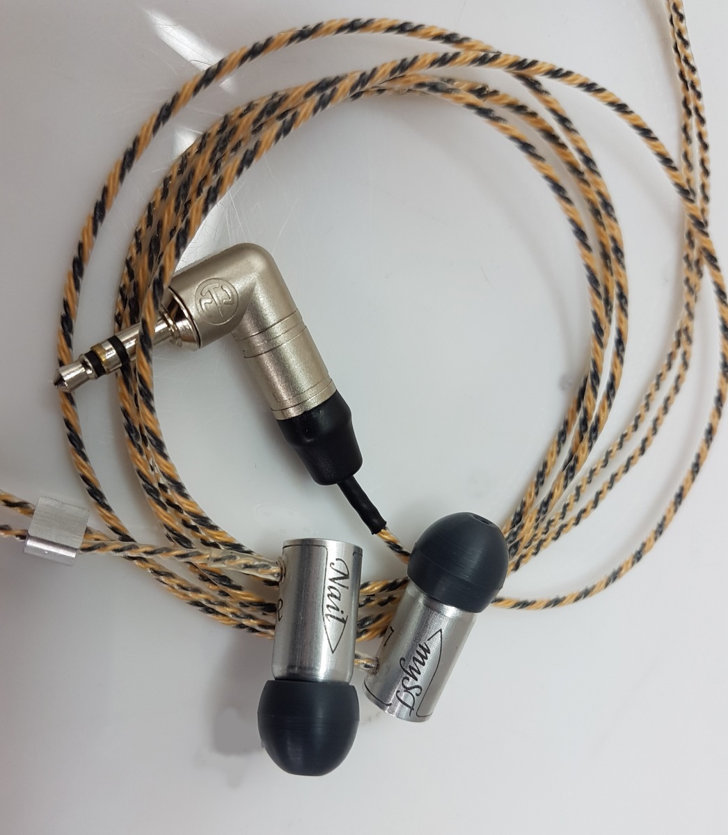 Внешне ушки немного располнели. Теперь это не «гильза» от «мелкашки», а скорее патрон Макарова с диаметром около сантиметра. Материал - алюминий, форма – цилиндрическая, с плавным закруглением от корпуса к звуководу, который, как и положено, прикрыт мини фильтром для защиты от серы. Провод очень прочный и симпатичный, из посеребренной меди и вооруженный jack Neutrik 3,5 мм.