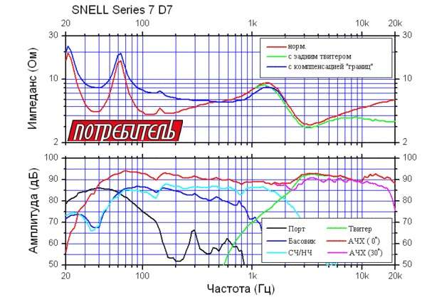 Интересно, что в направлении 30° от оси ВЧ диапазон приводится практически на один уровень с серединой, а заметный спад чувствительности начинается только после 15 кГц — продекларированная широкая направленность излучения АС Snell оказалась чистой правдой.