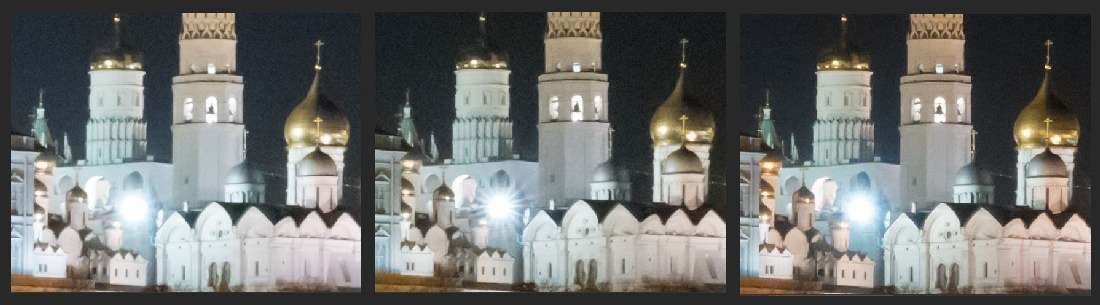При сравнении JPG-версий снимков с теми, что получены при конвертации из RAW (CR2), становится заметно, что встроенные в камеру средства обработки обеспечивают большую равномерность неконтрастных и однотонных участков: из RAW-версий можно получить кадры с лучшей детализацией, но за счет появления артефактов в указанных областях. В целом, качество JPG-снимков у данной камеры наиболее сбалансированное по нескольким критериям оценки. Напоследок отметим, что из всех участниц обзора объектив камеры Canon G7 X наиболее красиво рисует яркие огни, превращая их в многолучевые звезды.