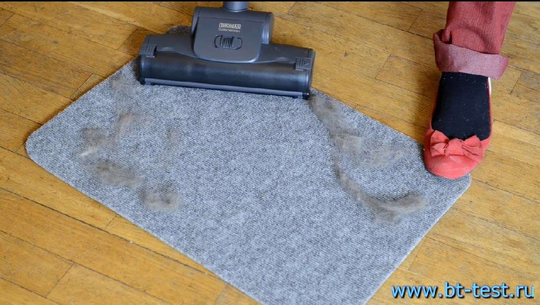 Про этот пылесос мы снимали видеоролик (его можно посмотреть на нашем сайте www.bt-test.ru) и хотели специально запачкать пол посильнее. Съемки проходили дома у шеф-редактора, причем он сам и его домочадцы приняли деятельное участие в эксперименте: принесли землю из цветочного горшка, насыпали какой-то крупы, накрошили печенья, а еще в ход пошла сушеная крапива — часть ее высыпали не в щи, а на пол. Устроили даже соревнование: с чьим мусором пылесос справится хуже. Включили пылесос и поняли: зря старались, победил THOMAS, уборка даже большого количества сухого мусора с пола для него — дело нескольких секунд. Даже на минимальной мощности.