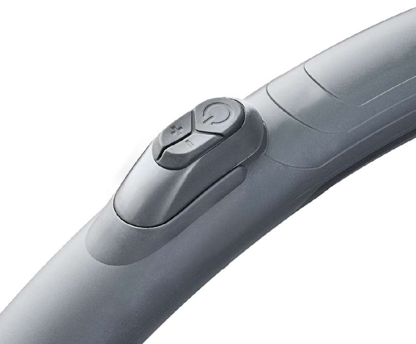 Влагозащищенные мягкие кнопки на корпусе позволяют включать/выключать пылесос и плавно регулировать мощность (4 уровня). Это здорово, но еще удобнее использовать дистанционное радиоуправление: на рукоятке расположены мягкие кнопки включения/выключения и «+» и «-», при помощи которых можно увеличить или снизить мощность.