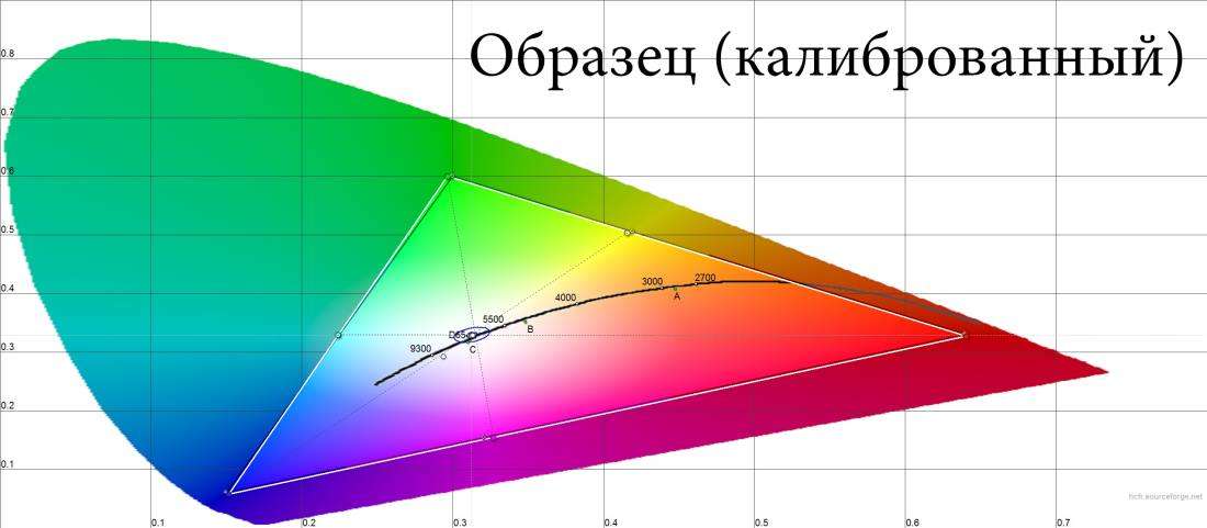 Если эти точки «скользят» по черной кривой, значит, изображение имеет почти идеальную цветовую температуру, совпадающую с референсом D65 (6500К). Таким образом, смещение по кривой не столь страшно, а иногда даже задумано.