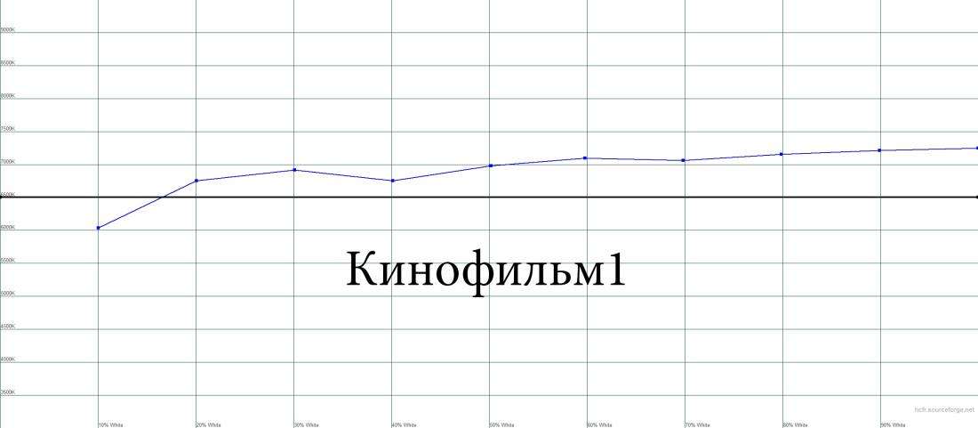Режимы, цветовая температура которых сдвинута в холодную зону: Образец - 6900K, Кинофильм 1 - 7000K, ТВ - 6900K, Игра - 7700K, Яркий Кинофильм - 8400K и Яркий ТВ - 8400K.