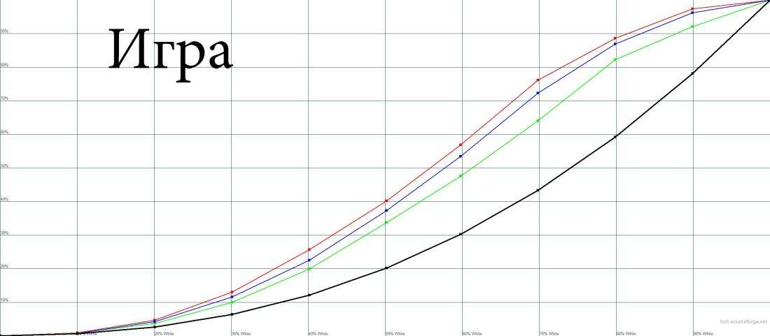 Во второй пул графиков собрались режимы, демонстрирующие в светлых тонах полное отсутствие гаммы - она попросту выходит за границы
