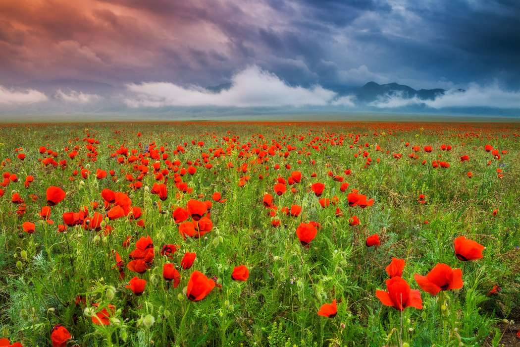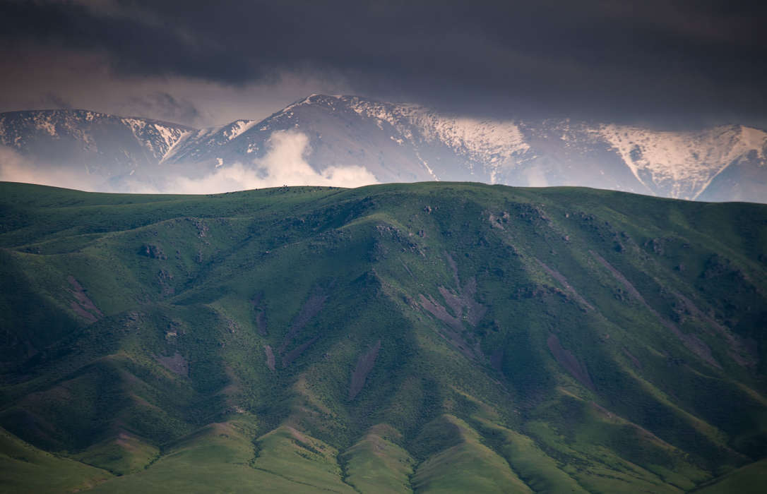 Штатный объектив также можно использовать для пейзажа. Он не настолько сильно вытягивает пространство, но часто позволяет избавиться от лишних объектов на заднем плане. Здесь видно, как 24мм помогли отсечь лишние объекты на заднем плане и сконцентрировать внимание зрителя на облаках, внезапно открывшейся горе и сполохе закатного света