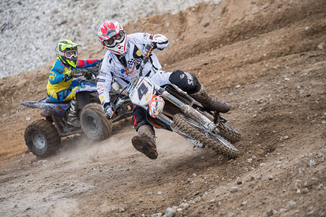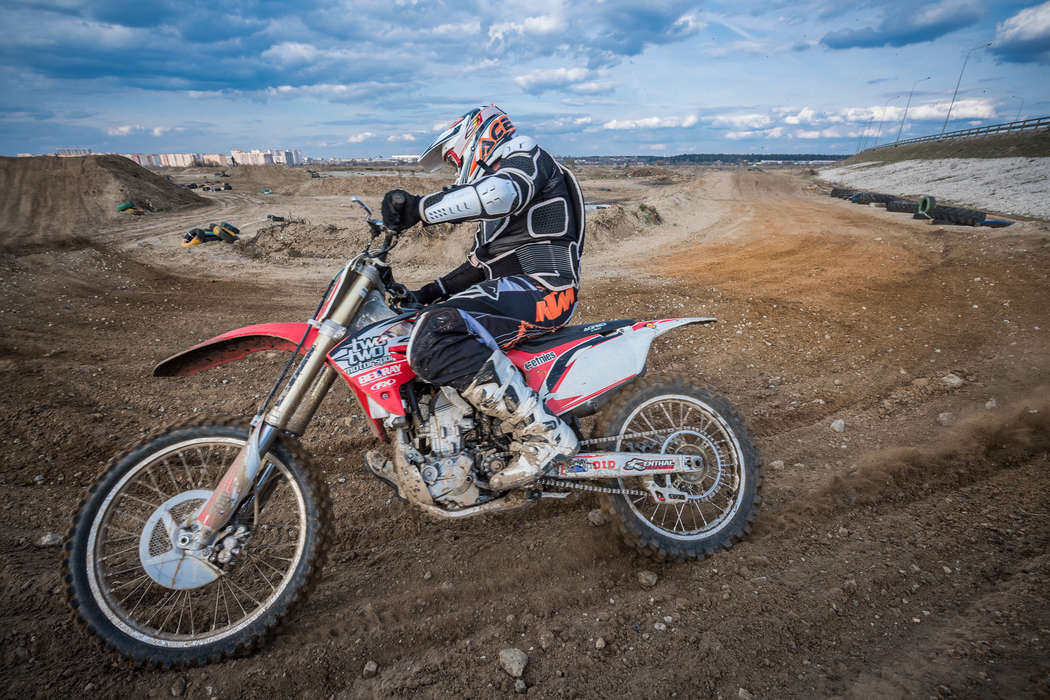 Если вы попали на тренировку, то у вас есть шанс пообщаться со спортсменами и попросить их вам подыграть. Здесь я попросил мотоциклиста проехать по самому краю насыпи и буквально лечь на воздух в повороту. Сам я стоял буквально в метре от мотоциклиста. Если вы попробуйте провернуть нечто подобное во время соревнований, то вы заставите спортсмена думать не о прохождении трассы а о том, как бы не сбить вас. На тренировках, да еще и по предварительной договоренности, такого давления над спортсменом нет