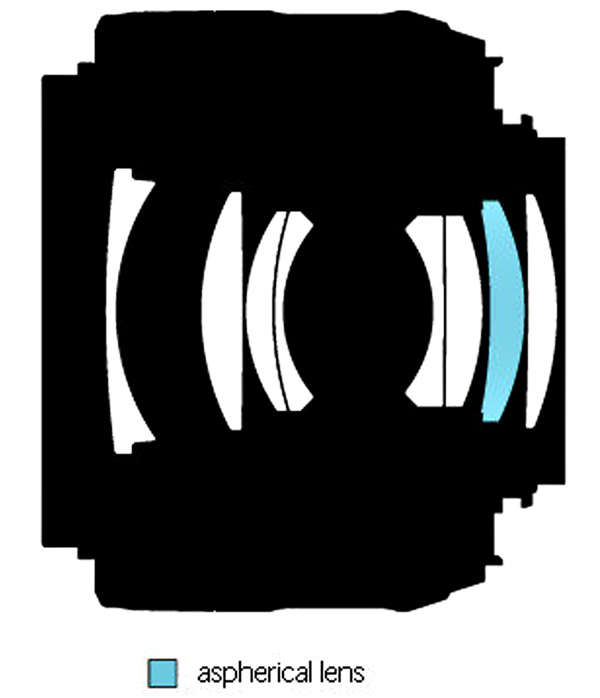 Оптическая конструкция: 8 элементов в 6 группах, включая 1 асферический |