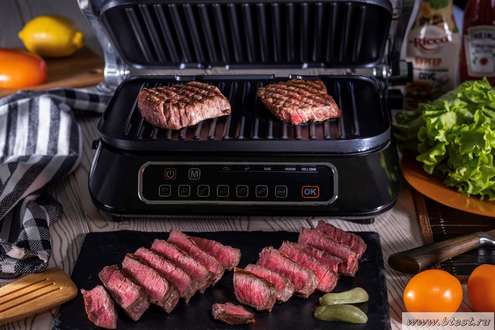 Для любителей стейков с кровью созданы контактные грили с электронным управлением, которые обеспечивают не только высокий жар, но и способны контролировать каждый этап приготовления. Конечно, цена на такие грили достаточно высока, как собственно, и цена на стейки. Один из самых доступных грилей в этой группе REDMOND SteakMaster RGM-M805, участник нашего теста.