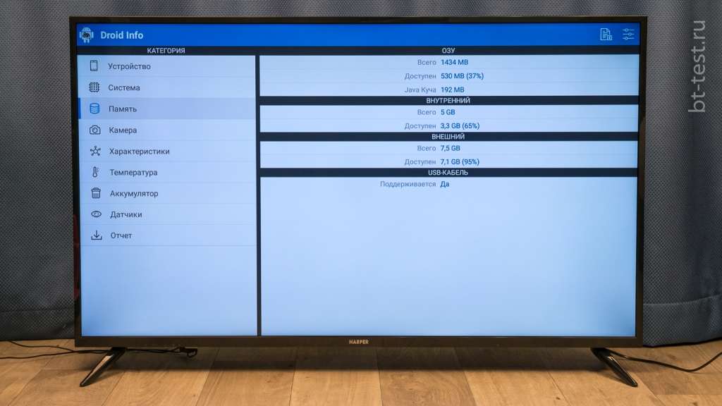 Во флагманском телевизоре Harper в качестве системы управления Смарт частью установлен Android 6.0. Это заметно выделяет новинку из всего модельного ряда бренда. Правда, столь продвинутой оболочке требуется немало оперативной памяти и места для установки софта. В новой модели Harper установлено 1,5 Гб оперативной памяти, чего вполне хватает даже для адекватного воспроизведения 4К контента, а для постоянного хранения данных отведено 5 Гб с лишним. Правда, пользователю фактически доступно около 3,5 Гб, но и этого места достаточно для установки приложений. Так что, переносить самые ходовые приложения на выносные диски не потребуются. Уже проще жить!