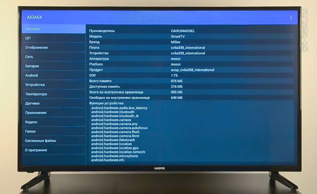 Вот теперь мы добрались до самого интересного. Поскольку на Harper 43F660TS стоит полноценный PlayMarket, набор инструментов дляанализу аппаратной начинки у нас оказался самый широкий