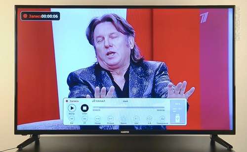 Harper 43F660TS предлагает два сервиса, связанных с записью: функцию PVR, позволяющую писатьнапрямую с ТВ-эфира, и функцию TimeShift, способнуюв любой момент поставить эфир на паузу. Разумеется, для функций записи потребуется шустрыйUSB-носитель. Как показали мои опыты,флешки класса 10 будет вполне достаточно. А выносные жесткие диски Harper 43F660TSпочему-то читать не хочет даже при наличии внешнего питания.