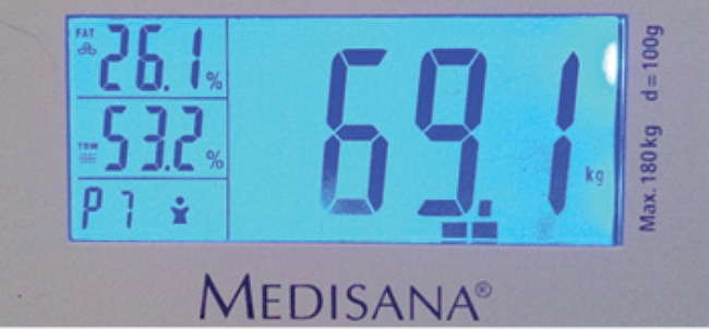 Все, вуаля, на экране высвечивается вся беспощадность, развеивающая миф о тяжелых костях: их всего-то2,8 кг, то есть 4,03 % (это уже я посчитала, другие весы сразу выдают в процентах). Мышц весы немецкого производителя насчитали аж 39,5 %, воды – 53,2 % , жира – 26,1 %. Кстати, если в сумме не получается 100 % – это нормально.
