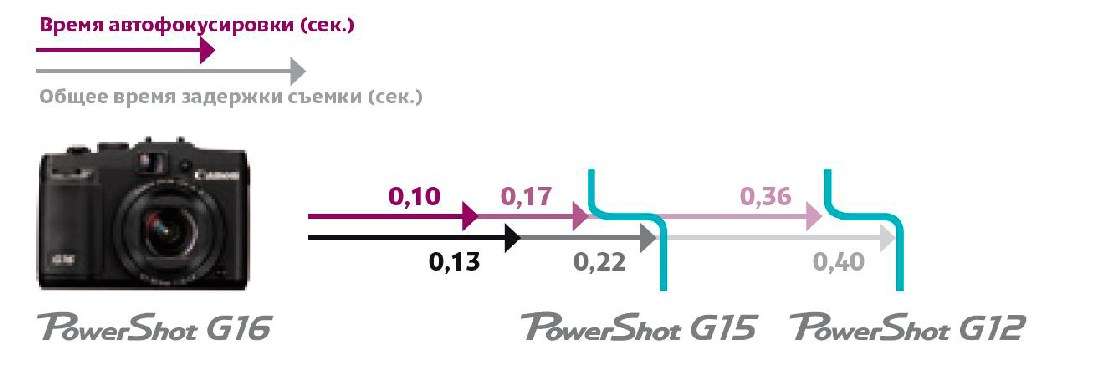 В модели PowerShot G16 скорость фокусировки значительно увеличена, а время реакции (лаг) сокращено.