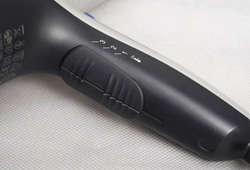 ПЕРЕКЛЮЧЕНИЕ РЕЖИМОВ. Переключатели располагаются на рукоятке с внешней стороны, во время работы фена удобно переключать режимы большим пальцем. Наш стилист-консультант посчитала такое положение переключателя и саму его форму не очень удачной.