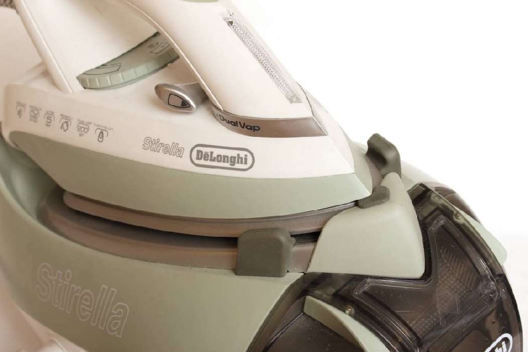 Утюг оснащен «фирменной» подошвой — это запатентованная De'Longhi двойная подошва Thermolon. Она состоит из двух зон: нижняя часть из нержавеющей стали, центральная и носик — белого цвета, комбинированная. Подошва устойчива к царапинам, эффективно распределяет тепло. Отверстия для пара расположены примерно на 2/3 всей подошвы, они одинакового мелкого диаметра. Примечательно, что пользователь может сам выбирать зону выброса пара.