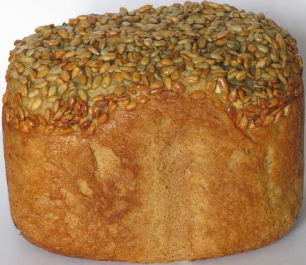 А вот и результат – румяный, удивительно ароматный хлеб, который радует глаз и не только. Корочка, а вместе с ней и посыпка получились такими хрустящими и вкусными, что даже крошки не хочется потерять – все в рот!