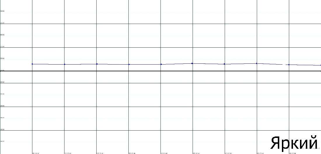 В режиме Яркий, как и предполагалось, яркость реализована с заметным завышением уровня зеленого канала — до 120 процентов. При этом уровень красного канала составляет всего 40 процентов. Программа представляет график наиболее удобным образом, но если представить, что уровень красного подрастет до 100 процентов, то уровень зелёного просто зашкалит, улетая в космос….