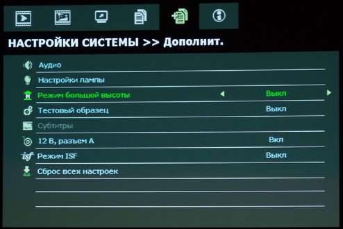 Все вышеизложенные пункты меню позволяют настроить проектор практически под любые условия работы: от оборудованного VIP-кинозала в приличном коттедже до школьного класса. Но, безусловно, для таких высокотехнологичных настроек изображения потребуется сертифицированный специалист — тут сантехником с улицы не обойдешься.