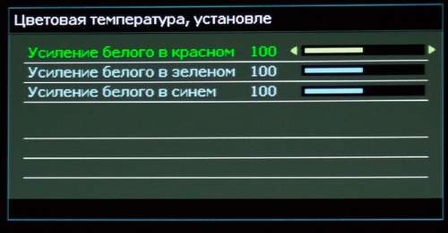 В режиме Пользовательский цветовая температура составляет примерно 6400К. Это немного теплее референса, но не имея эталона перед глазами, такое различие не увидит даже опытный калибратор. Аналогичная ситуация и с режимом Фильм.