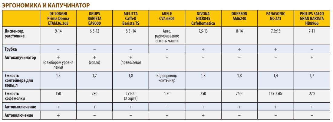 Отметим также кофемашину PHILIPS SAECO GRAN BARISTA HD8966 с ее рецептами, KRUPS BARISTA EA9000, умеющую готовить ристретто и MIELE CVA 6805 с функцией кофейник, позволяющей приготовить кофе сразу для небольшой компании.