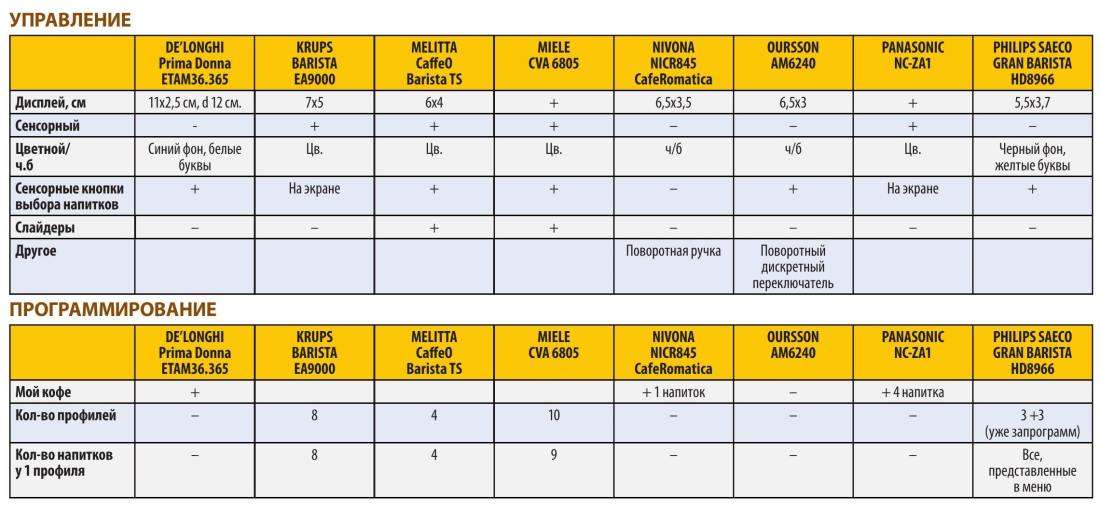 Объясним, почему мы отказались от оценки качества напитков. В современных кофемашинах можно запрограммировать все: крепость, температуру, объем порции. В некоторых особо умных моделях можно даже изменять время заваривания кофе, и этим корректировать вкус эспрессо и других видов кофе. Если вас не устраивают заводские установки, то вы всегда можете создать собственные.