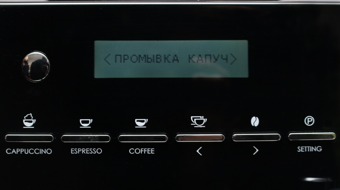 После каждого приготовления капучино машина напоминает о необходимости промывки. При нажатии на кнопку система автоматически промывается в течение примерно 30 секунд.